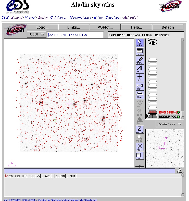 ... and sends it to the Aladin sky atlas, which displays the IBVS table overlayed on the default image: