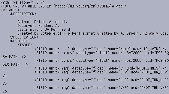 ... clicking on the link (which contains a little script in it) instructs Aladin to request a specific file from the IBVS server. The request starts at IBVS a CGI program which (using a Perl script written by A. Sragli) converts tha text table to VOTable XML on-the-fly: